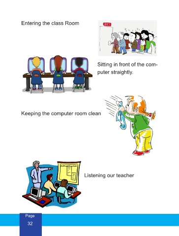 Entering the class Room Sitting in front of the com- puter straightly. Keeping the computer room clean Listening our teacher Page 32