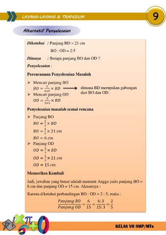 Karena diketahui perbandingan BO : OD = 2 : 5, maka :