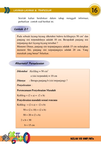 Pada sebuah layang-layang diketahui bahwa kelilingnya 50 cm dan