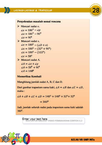 Jadi, jumlah seluruh sudut pada trapesium sama kaki adalah