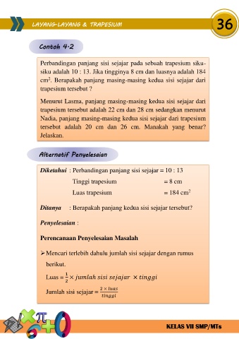 siku adalah 10 : 13. Jika tingginya 8 cm dan luasnya adalah 184