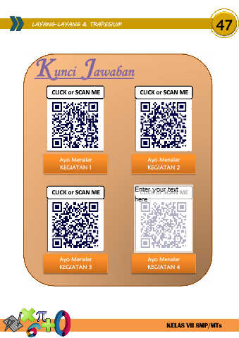LAYANG-LAYANG & TRAPESIUM 47 Kunci Jawaban CLICK or SCAN ME CLICK or SCAN ME Ayo Menalar Ayo Menalar KEGIATAN 1 KEGIATAN 2 CLICK or SCAN ME CLICK or SCAN ME Ayo Menalar Ayo Menalar KEGIATAN 3 KEGIATAN 4 KELAS VII SMP/MTs