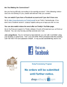 Go to YouTube and search for Trinity Lutheran Church of Durand and you will find our