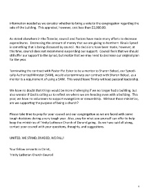 keep the ministries of Trinity Lutheran Church of Durand going. As we have said all along,