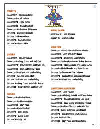 December 15—Dawn Hendon and Coltin Rau December 29—Maureen Witte and Louise Owen