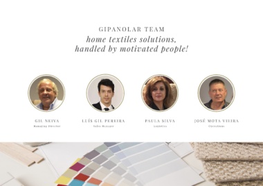 GIPANOLAR TEAM home textiles solutions, handled by motivated people! GIL NEIVA LUÍS GIL PEREIRA PAULA SILVA JOSÉ MOTA VIEIRA Managing Director Sales Manager Logistics Operations