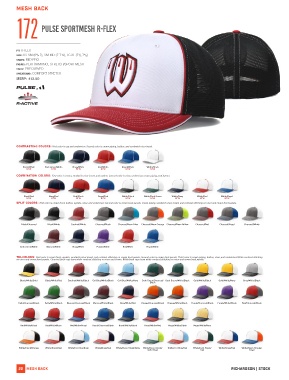 COMBINATION COLORS: First color is crown, sandwich visor insert, and eyelets. Second color is visor, undervisor, crown piping, and button.