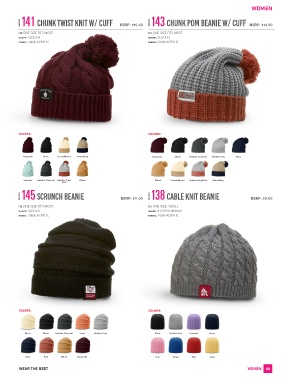 141 CHUNK TWIST KNIT W/ CUFF MSRP: $15.50 143 CHUNK POM BEANIE W/ CUFF MSRP: $14.50
