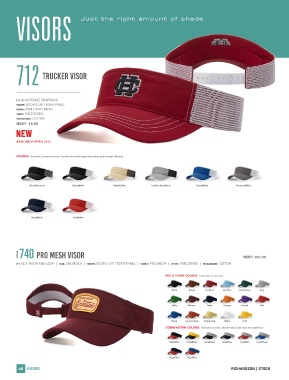 FIT: ADJ. HOOK-AND-LOOP | SIZE: SM, MD/LG | SHAPE: VISOR 2 1/4” FRONT PANEL | FABRIC: PRO MESH | VISOR: PRECURVED | SWEATBAND: COTTON