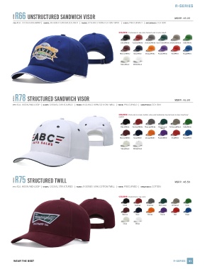 COLORS: Undervisor is cap color. Second color is visor insert.