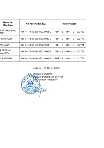 No Nama Santri Tempat Lahir L/P No Peserta IW 2023 Nomor Ijazah
