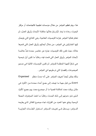 ﺒـذﻝك ﻴﻤﻜـن أﻴـﻀﺎً ﺘﻌرﻴـف اﻝﻤـؤﺘﻤر ﻋﻠـﻰ أﻨـﻪ ﺤـدث ﻤـﻨظم Organised