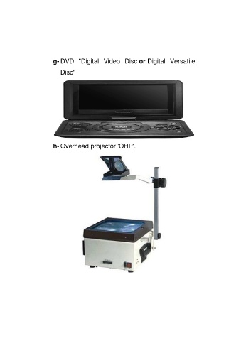 g- DVD "Digital Video Disc or Digital Versatile Disc" h- Overhead projector 'OHP'.