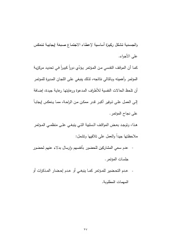 اﻝﻤؤﺘﻤر وأﻫﻤﻴﺘﻪ وﺒﺎﻝﺘﺎﻝﻲ ﻨﺘﺎﺌﺠﻪ ،ﻝذﻝك ﻴﻨﺒﻐﻲ ﻋﻠـﻰ اﻝﻠﺠـﺎن اﻝﻤـدﻴرة ﻝﻠﻤـؤﺘﻤر