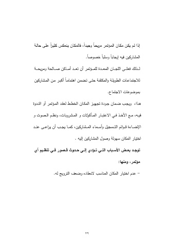 ﻫـذا ،وﻴﺠـب ﻀـﻤﺎن ﺠـودة ﺘﺠﻬﻴـز اﻝﻤﻜـﺎن اﻝﺨطـط ﻝﻌﻘـد اﻝﻤـؤﺘﻤر أو اﻝﻨـدوة