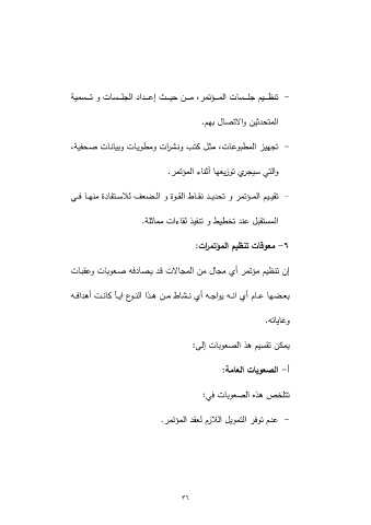 إن ﺘﻨظﻴم ﻤؤﺘﻤر أي ﻤﺠﺎل ﻤن اﻝﻤﺠﺎﻻت ﻗـد ﻴـﺼﺎدﻓﻪ ﺼـﻌوﺒﺎت وﻋﻘﺒـﺎت