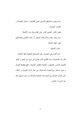 -ﻋـدم وﺠـود ﻤﻜـﺎن ﻤﻼﺌـم ﻝﻌﻘـد اﻝﻤـؤﺘﻤر أو اﻝﺒﻌـد اﻝﻤﻜـﺎﻨﻲ ﻝﻠﻤـﺸﺎرﻜﻴن