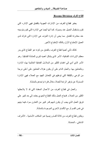ﯾﻌﺘﺒﺮ ﻗﻄﺎع اﻟﻐﺮف ﻣﻦ اﻹدارات اﻟﺤﯿﻮﯾﺔ ﺑﺎﻟﻔﻨﺪق ﻓﮭﻲ اﻹداره اﻟﺘﻲ