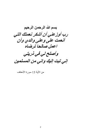 تغُ الله اٌشؼّٓ اٌشؼُ١ سب أٚصػٕ ٟأْ أشىش ٔؼّره اٌرٟ أٔؼّد ػٍٚ ٝػٍٚ ٝاٌذٚ ٞأْ اػًّ طاٌؽا ذشػاٖ ٚأطٍػ ٌ ٟف ٟرس٠رٟ إٔ ٟذثد إٌ١ه ٚأ ِٓ ٟاٌّغٍّٓ١ ٖٓ ا٣٥خ ٍٞ 15هح الأؽوبف 2