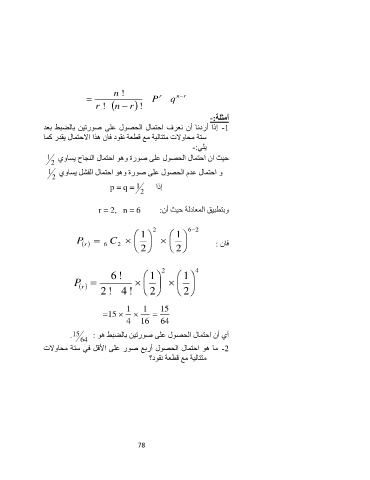 ٝثزبج٤ن أُؼبكُخ ؽ٤ش إٔr = 2, n = 6 :