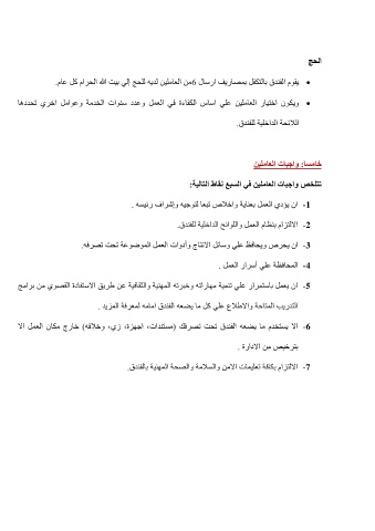-6الا يستخدم ما يضعه الفندق تحت تصرفك (مستندات ،اجهزة ،زي ،وخلافه) خارج مكان العمل الا