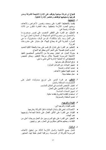 لذسرٙب ٚاعز١ؼبثٙب ٌٛظبئف ٚػٕبطش الإداسح اٌزبٌ١خ:
