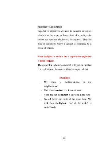Superlative adjectives are used to describe an object
