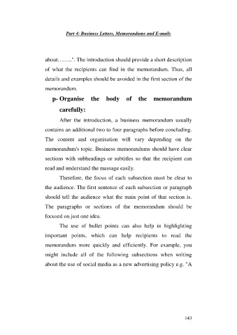 p- Organise the body of the memorandum