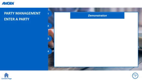 PARTY MANAGEMENT 1 Demonstration ENTER A PARTY 2 3 4 Page 4 Content Page