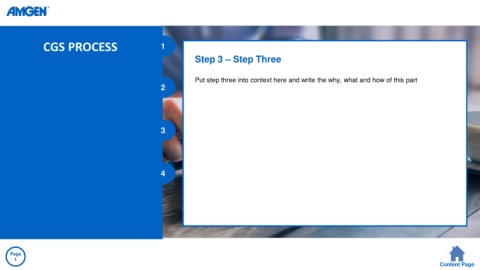 CGS PROCESS 1 Step 3 – Step Three Put step three into context here and write the why, what and how of this part 2 3 4 Page 1 Content Page