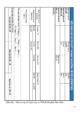 Ghi chú : Nếu có sự cố suýt xảy ra TNLĐ thì phải làm biểu .                             地點:  Địa điểm: