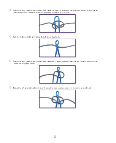 5 Bring the right gray strand underneath the right blue strand and over the left blue strand and then