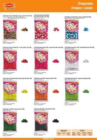 Sabores/Flavors.: Morango, Abacaxi, Laranja, Maçã Verde, Uva, Framboesa e Limão Dragee Colored Strawberry Heart 500g Confeito Pipper Azul Colorido 500g / Dragee Colored Blue Heart 500g
