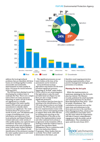 www.catchments.ie/maps. Agriculture was found to be the most prevalent significant pressure impacting on “At Risk” water bodies (53%), which is not surprising given that agriculture is also the most prevalent land use (Figure 4), but there are also a range of other significant pressures.