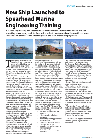 A Marine Engineering Traineeship was launched this month with the overall aims of