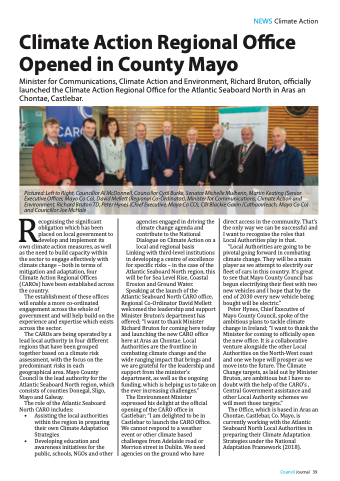 Peter Hynes, Chief Executive of Mayo County Council, spoke of the ambitious plans to tackle climate change in Ireland; “I want to thank the Minister for coming to officially open the new office. It is a collaborative venture alongside the other Local Authorities on the North-West coast and one we hope will prosper as we move into the future. The Climate Change targets, as laid out by Minister Bruton, are ambitious but I have no doubt with the help of the CARO’s , Central Government assistance and other Local Authority schemes we will meet those targets.”