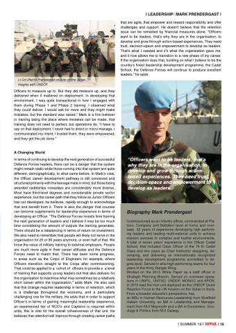 Officers to measure up to. But they did measure up, and they delivered when it mattered on deployment. In developing that environment, I was quite transactional in how I engaged with them during Phase 1 and Phase 2 training. I observed what they could deliver, I would ask for more and they might make mistakes, but the standard was raised.” Mark is a firm believer in training being the place where mistakes can be made, that training does not need to perfect, but operations do. “I have to say on that deployment, I never had to direct or micro-manage, I communicated my intent, I trusted them, they were empowered, and they got the job done.”