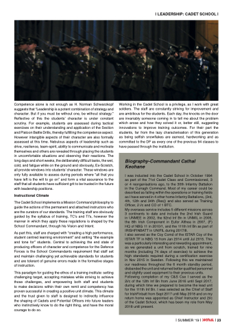 Working in the Cadet School is a privilege, as I work with great soldiers. The staff are constantly striving for improvement and are ambitious for the students. Each day, the knocks on the door are invariably someone coming in to tell me about the problem which arose and how they solved it or, better still, suggesting innovations to improve training outcomes. For their part the students, far from the lazy characterisation of this generation as being selfish snowflakes are earnest, hardworking and as committed to the DF as every one of the previous 94 classes to have passed through the institution.