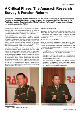 The recently published Amárach Research Survey on the restoration of theSupplementary Pension for Post-2013 entrants recently formed a key component of RACO’s case to the Public Service Pay Commission. RACO Professional Staff provide an overview of the sur- vey and the case to the PSPC.