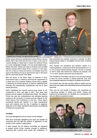 The UK Defence Committee note that it is not just good enough to have the correct numbers of trained personnel, they must have adequate experience throughout all grades and services.