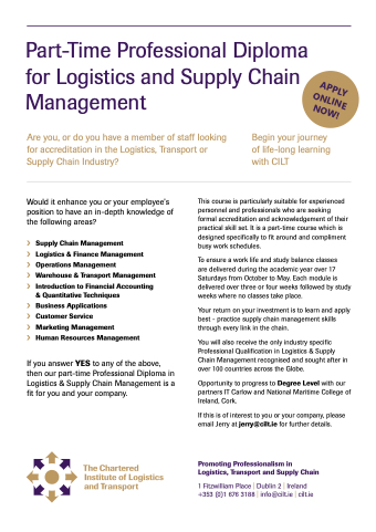 If this is of interest to you or your company, please email Jerry at jerry@cilt.ie for further details.