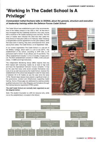 Commandant Cathal Keohane talks to SIGNAL about the genesis, structure and execution of leadership training within the Defence Forces Cadet School