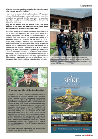Straight out of school I joined the Defence Forces as an Army Cadet in 1993 as a member of the 70th Cadet Class. I retired in the rank of Commandant last December having served in 12 Inf Bn, 28 Inf Bn, DFHQ with Directorate of Training and 2 Bde HQ Operations & Plans as well as many other shorter-term appointments in my 25 years of service. In terms of overseas I served in many interesting places around the world in UNMEE (Eritrea), UNMIL (Liberia), MONUC (Congo), ISAF (Afghanistan), UNTSO (Lebanon) and UNDOF (Syria) with the latter being in a civilian capacity with the UN. I gained valuable experience in the Defence Forces across various strands of the Organisation in HR, operations, planning, logistics, training and numerous command postings. All my service was a great privilege and being a Platoon and Company Commander for recruit training and putting my mark on the future talent pipeline of the DF has been a source of great pride for me.
