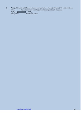 24. An equilibrium is established between nitrogen tetra -oxide and nitrogen (IV) oxide as shown below: State and explain what happens when temperature is increased N 2O 4(l) 2NO 2(g) Pale yellow Red-brown fumes www.kcse-online.info 101