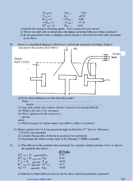 20. Below is a simplified diagram of the Down‘s cell for the extraction of sodium. Study it