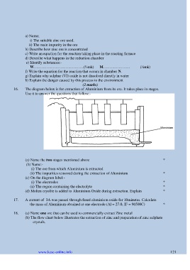 16. The diagram below is for extraction of Aluminium from its ore. It takes place in stages.