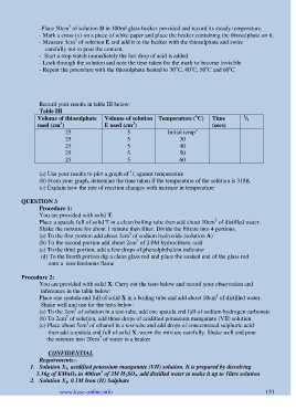 - Repeat the procedure with the thiosulphate heated to 30 C, 40 C, 50 C and 60 C