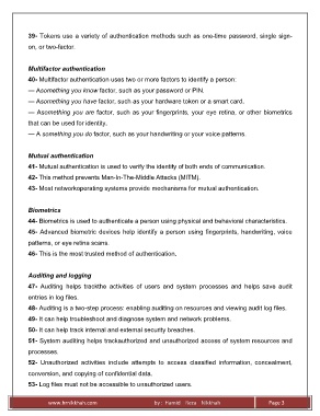 44- Biometrics is used to authenticate a person using physical and behavioral characteristics.