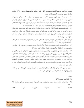 - 11ﺷﻴﺦ ﻏﻼﻣﺤﺴﻴﻦ ﺷﻴﺦ اﻻﺳﻼم ﺧﺮاﺳﺎﻧﻲ .وي از ﺷﺎﮔﺮدان ﺣﺎﺟﻲ ﺳﺒﺰواري اﺳﺖ .ﻣﺪت ﺷﺶ ﺳﺎل