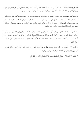 آﻧﮕﺎه ﻓﺮﻣﻮد :وﺻﯿﺖ ﻧﺎﻣﻪ را درﻫﻢ ﭘﯿﭽﯿﺪ و ﺑﮕﻮاﻫﺎن ﻓﺮﻣﻮد :ﺑﺮوﯾﺪ ﺧﺪا ﺷﻤﺎ را رﺣﻤﺖ ﮐﻨﺪ .ﭘﺲ از رﻓﺘﻦ اﯾﺸﺎن ﻣﻦ ﮔﻔﺘﻢ :ﭘﺪرم